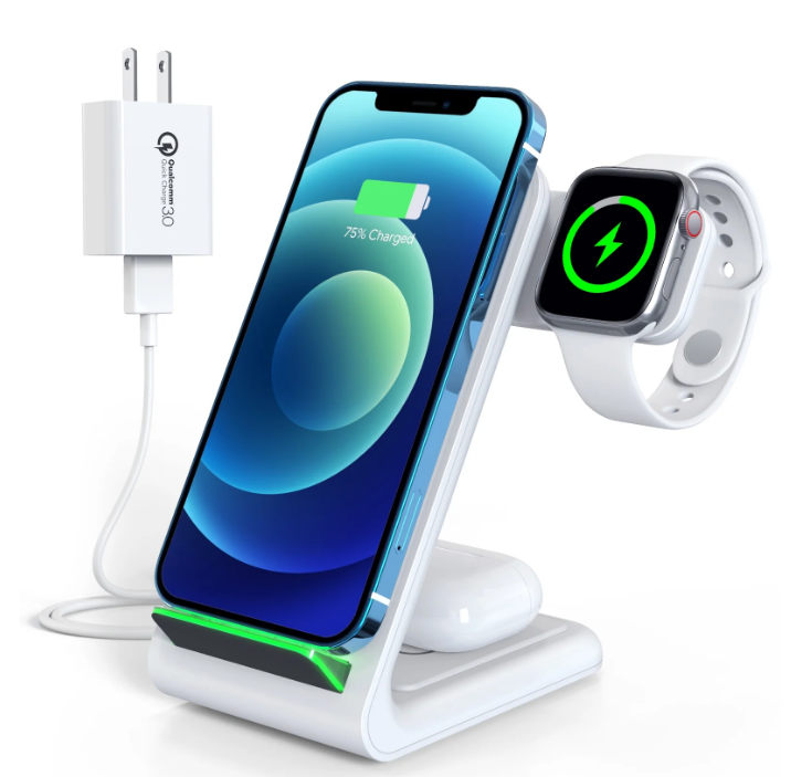 3-in-1 Wireless Charging Station for iPhone, Apple Watch & AirPods – Fast Charging Dock with Adapter