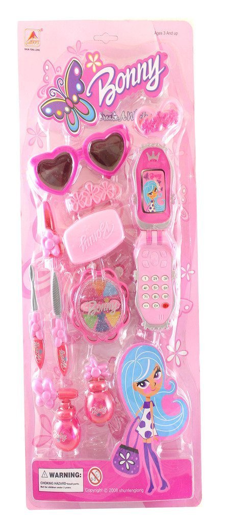 Bonny Girl Pretend Play Accessories Set – Sunglasses, Phone, Purse, Makeup & More – Toy Kit for Girls Ages 3+