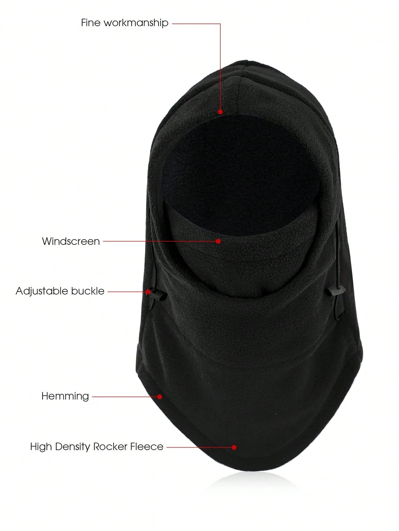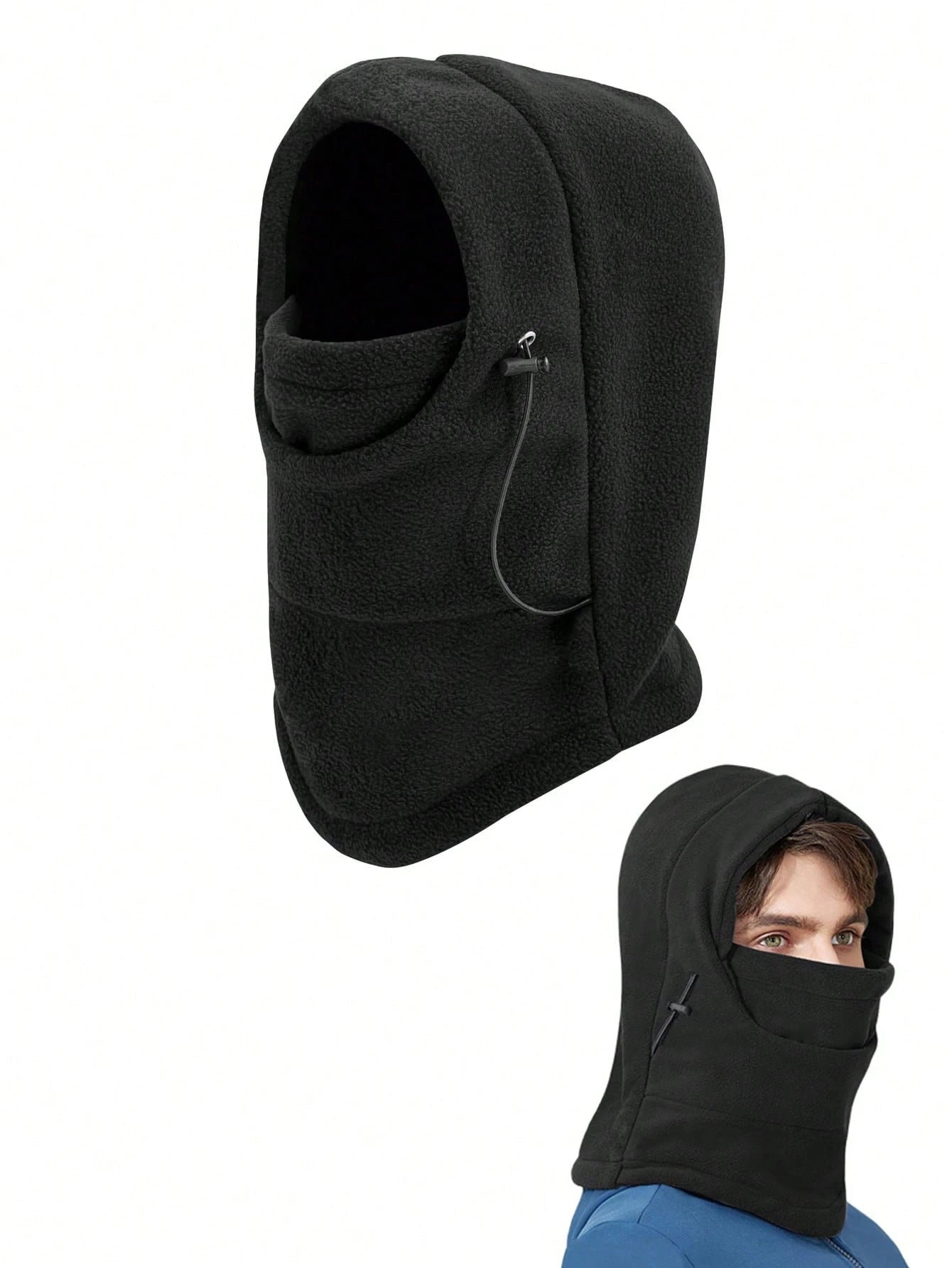 Stay protected from harsh winter weather with the Adjustable Fleece Winter Hood Balaclava. Designed to shield your head, face, neck, and ears, this versatile piece is perfect for outdoor work or activities in cold conditions. Made from thick, breathable fleece, it retains warmth without causing overheating. Adjustable drawstrings ensure a snug, comfortable fit, while its multifunctional design lets you wear it as a balaclava, neck warmer, or hood. One size fits most.