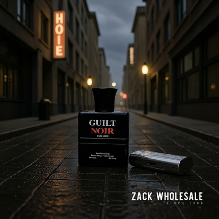 Guilt Noir is a bold Eau de Toilette designed for the confident man who commands attention. Housed in a sleek matte black bottle with striking red lettering, this fragrance captures modern masculinity and charm. Its rich blend of smoky woods, spicy undertones, and a touch of citrus freshness offers a versatile scent that effortlessly moves from day to night. Ideal for business, evening events, or casual wear, Guilt Noir delivers a long-lasting, memorable aroma. Features include eye-catching packaging, easy spray application, and a perfect gift choice for any occasion.