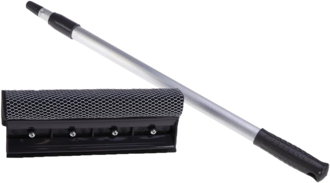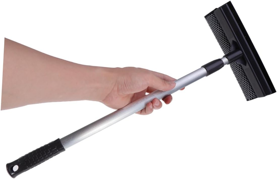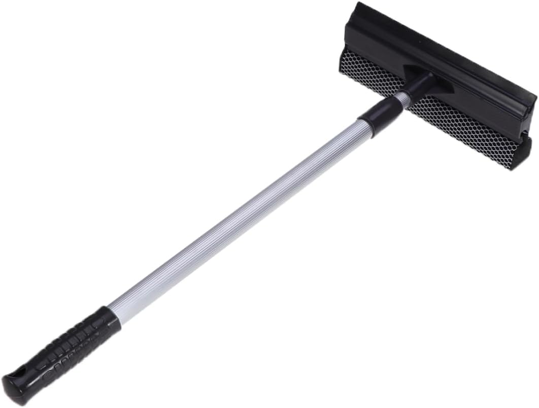Extendable Car Window Squeegee with Mesh Scrubber – Aluminum Handle Windshield Cleane